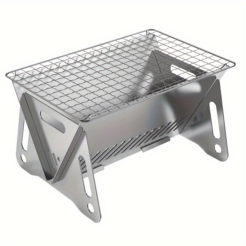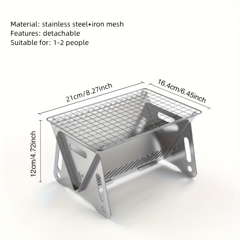 1pc Portable Camping Stove – Durable Stainless Steel Folding Wood Burning Stove with Grill Plate for Outdoor Adventures, Backpacking, and BBQ – Compact, Lightweight, and Easy to Carry