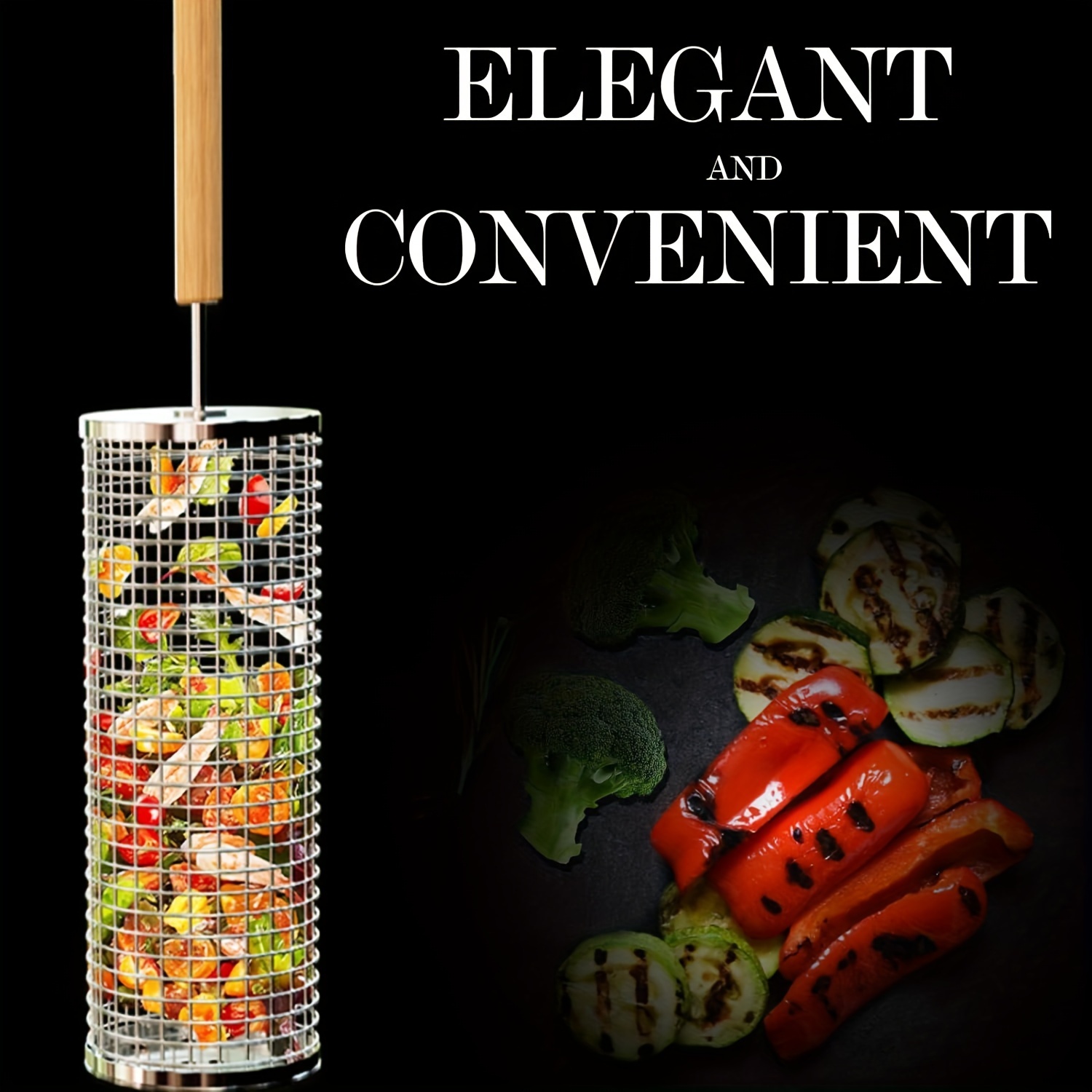 1pc Premium Nesting Grill Basket – Heavy-Duty, Durable Corrosion-Resistant 304 Stainless Steel with Ergonomic Wooden Grip, Easy-Foldable Grill Net for Even Cooking – Perfect for Grilling Seafood, Veggies, and More, Ideal Gift for Outdoor Enthusiasts, Perf